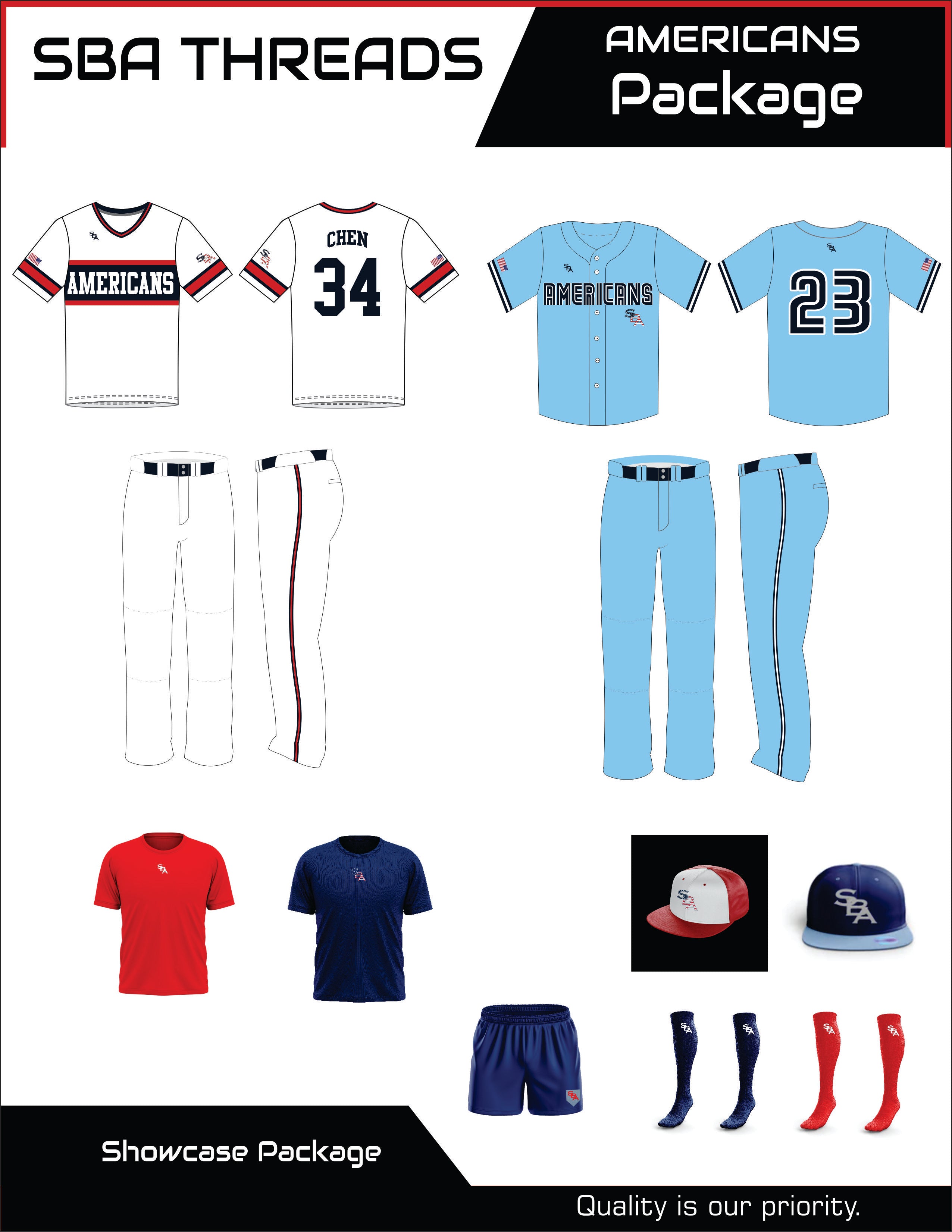 SHOWCASE BASEBALL ACADEMY UNIFORMS PACKAGE AMERICANS